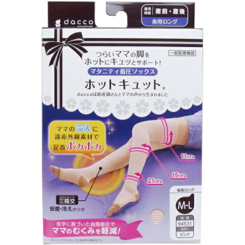 ホットキュット マタニティ着圧ソックス 夜用ロング ピンク M-Lサイズ 1足入 [キャンセル・変更・返品不可]