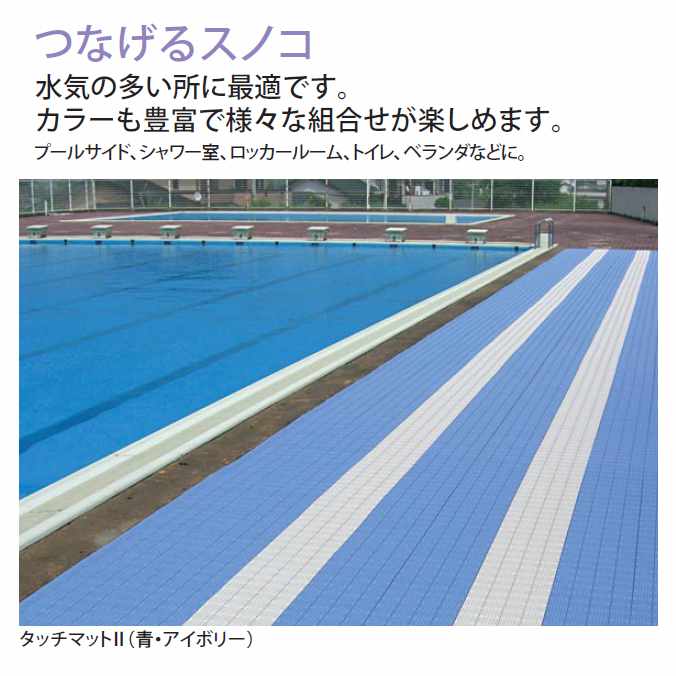 プールサイド、シャワー室、ロッカールーム、トイレ、ベランダなどに。