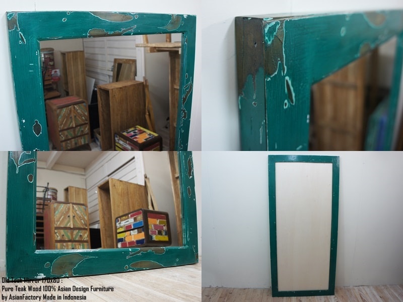 ■カラー:アンティークグリーン ■素材:オールドチーク材(無垢) 、鏡(5mm厚) ■原産地:インドネシアOld Teak Mirror 165 GR 〓 オールドチークミラー170 GR 〓