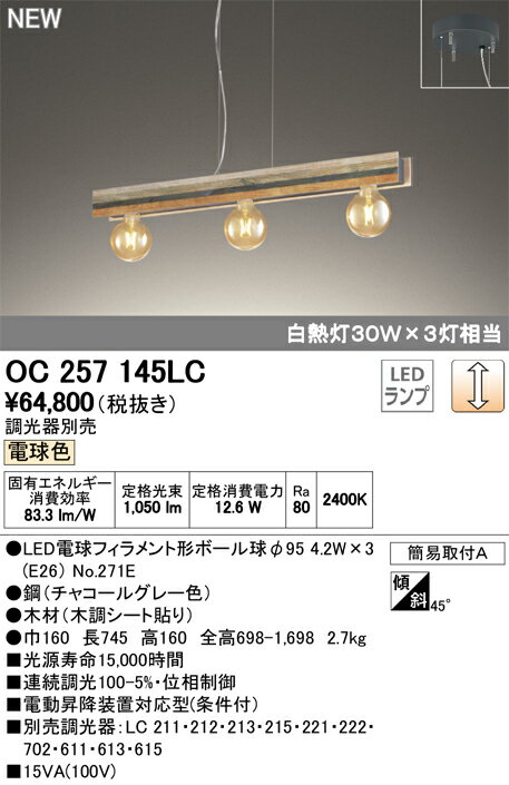 カテゴリペンダントライト ◆メーカー希望小売価格はメーカーカタログに基づいて掲載しています◆ダクトレール用ペンダント天井直付用ペンダントダイニング・食卓用ペンダント 北欧デザインペンダントアンティーク調ペンダントガラス素材ペンダント ●関連商品 ペンダントライトOC257144LC フレンジタイプ鋼(チャコールグレー色) 木材(木調シート貼り) 長さ:945mm 調光・白熱灯30W×4灯相当43,078円ペンダントライトOC257145LC フレンジタイプ鋼(チャコールグレー色) 木材(木調シート貼り) 長さ:745mm 調光・白熱灯30W×3灯相当37,310円